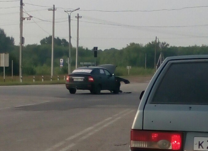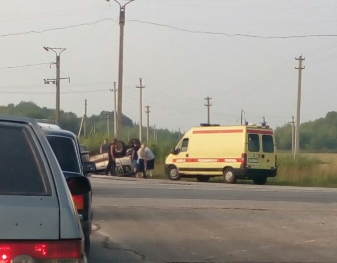 Утром 25 июля в районе Ромодановского поста столкнулись два легковых автомобиля из-за удара одна из машин перевернулась на крышу.