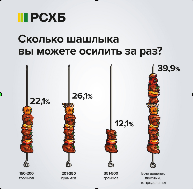 Опрос РСХБ: 40% россиян готовы за один раз съесть полкило шашлыка (и даже больше)