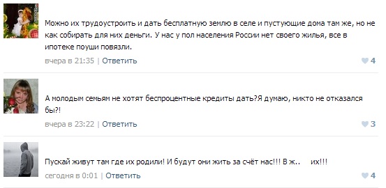 Было и предложение сначала предоставить такие условия местным жителям. А уже потом работать с переселенцами.