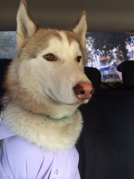 С наступлением холодов все люди укутались в теплые вещи. И не забыли про своих питомцев. Пес явно доволен. И явно не мерзнет.