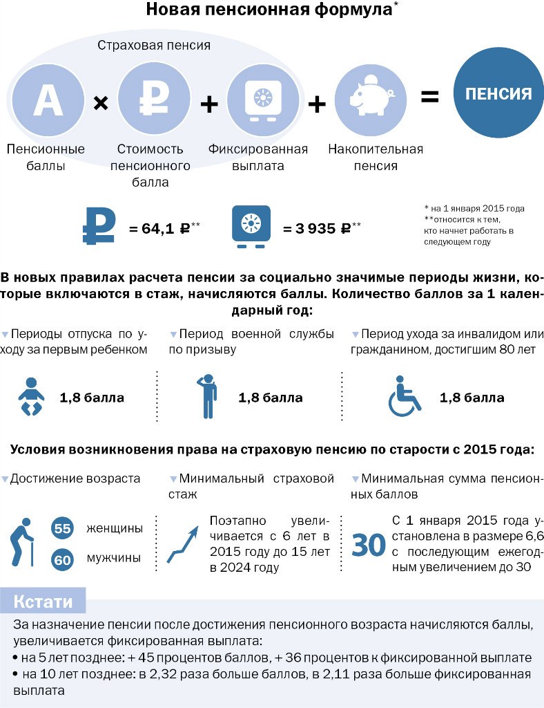 Сейчас размер пенсии зависит от объема страховых взносов, которые уплачивают работодатели. При этом длительность стажа практически не влияет на размер пенсии. С 1 января 2015 года ситуация изменится.