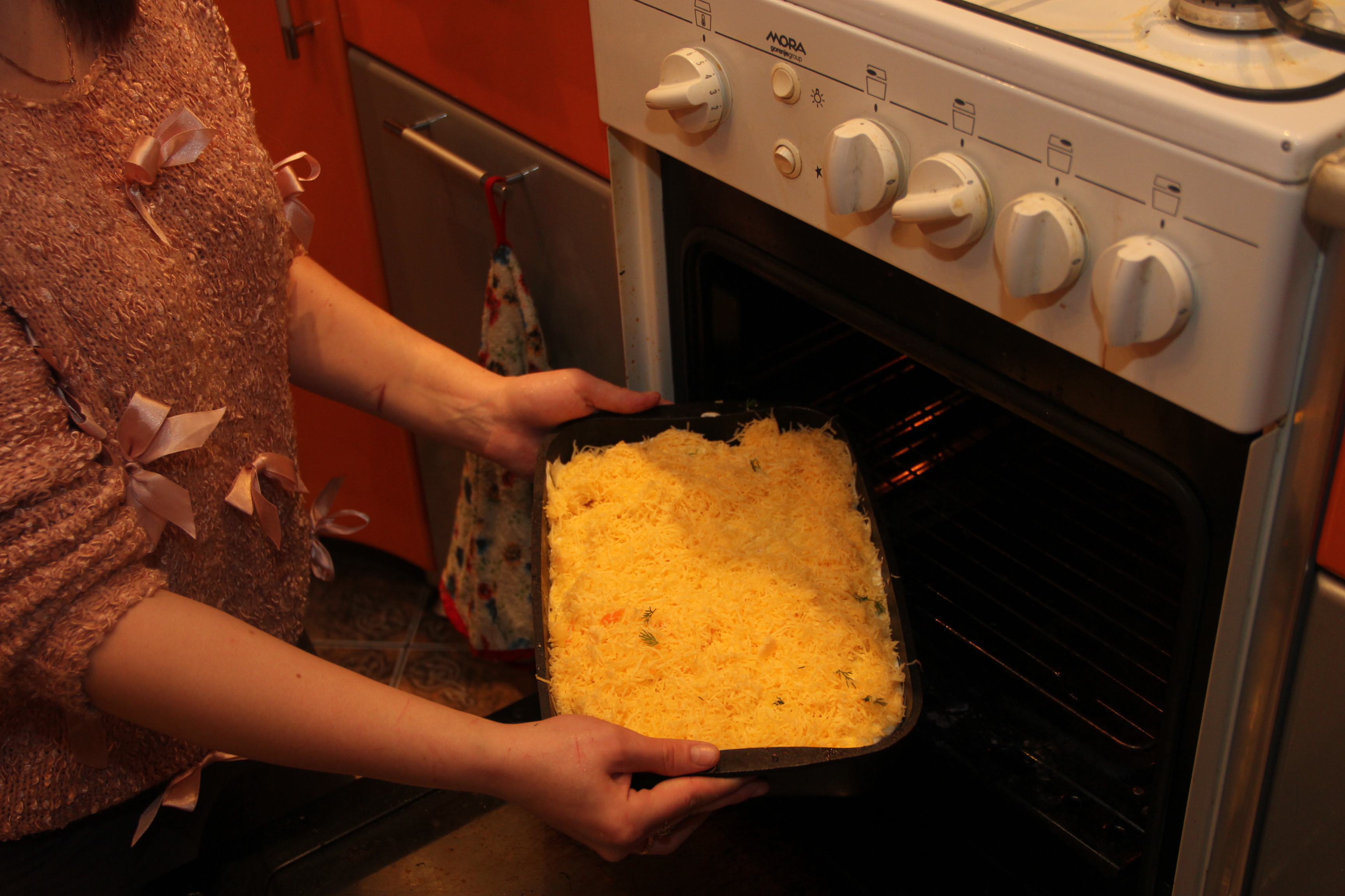 Ставим в разогретую духовку на один час и выпекаем до золотистой корочки.