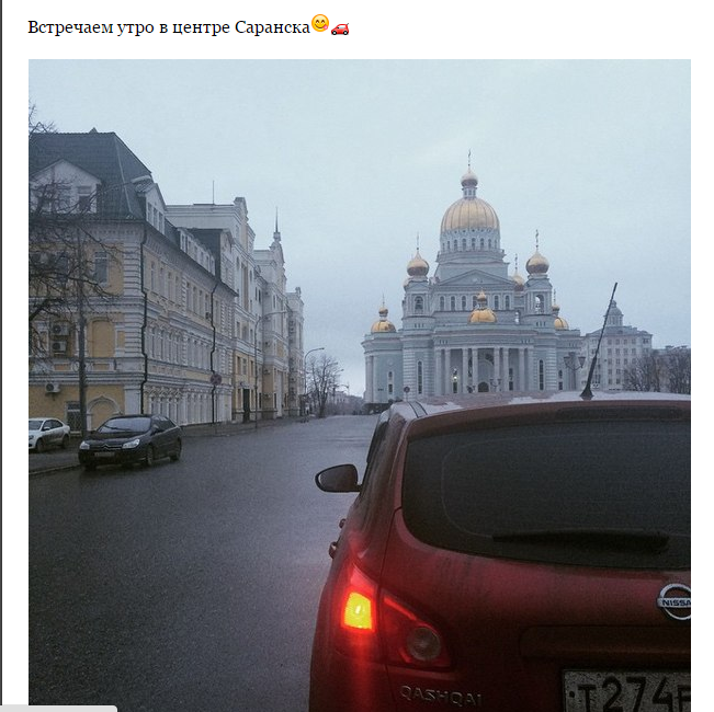 А Ксения Гурьева встречала утро понедельника в машине в центре Саранска.