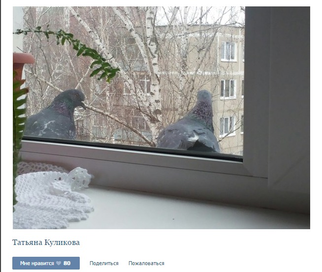 А Татьяну Куликову разбудила вот эта парочка визитеров. Совсем не теплая погода заставляет их проситься пустить их в дом.