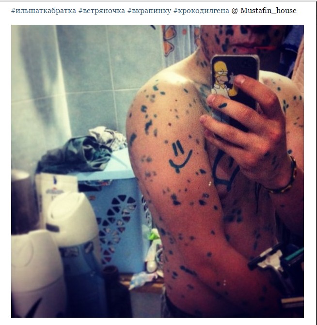 А утро Ильшата Мустафина началось с зеленки. Художник постарался оставить улыбки на его теле для хорошего настроения!