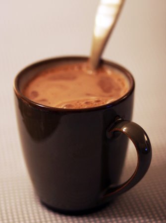 Нужно довести до кипения пол-литра молока, затем добавьте в него две чайные ложки сахара и плитку черного шоколада, поломав ее на кусочки и полностью растворив в горячем молоке.