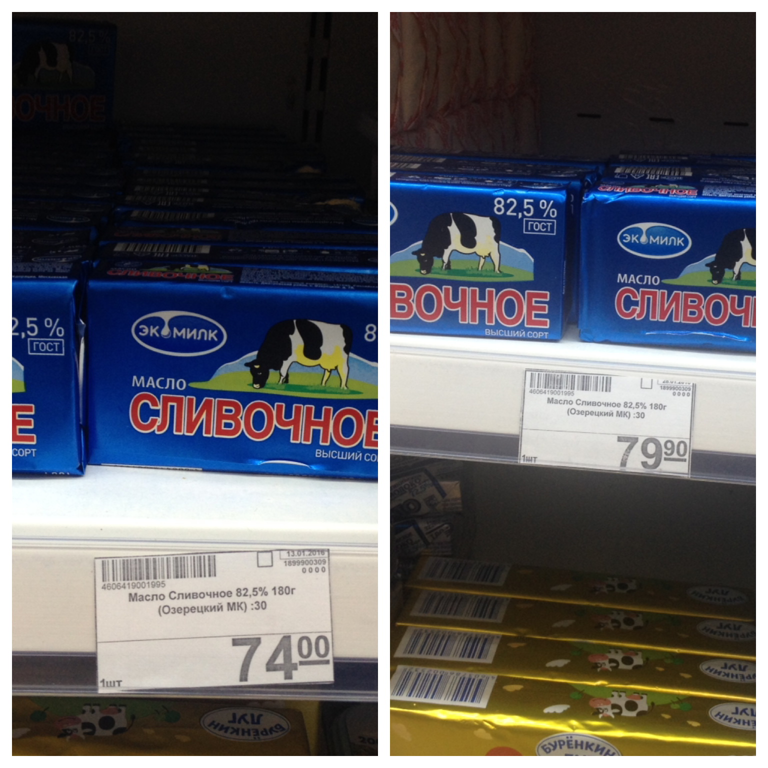 По сравнению с прошлой неделей цены на продукты изменились не сильно, например подешевела гречка, но выросли цены на сливочное масло и сахар в магазине «Магнит».