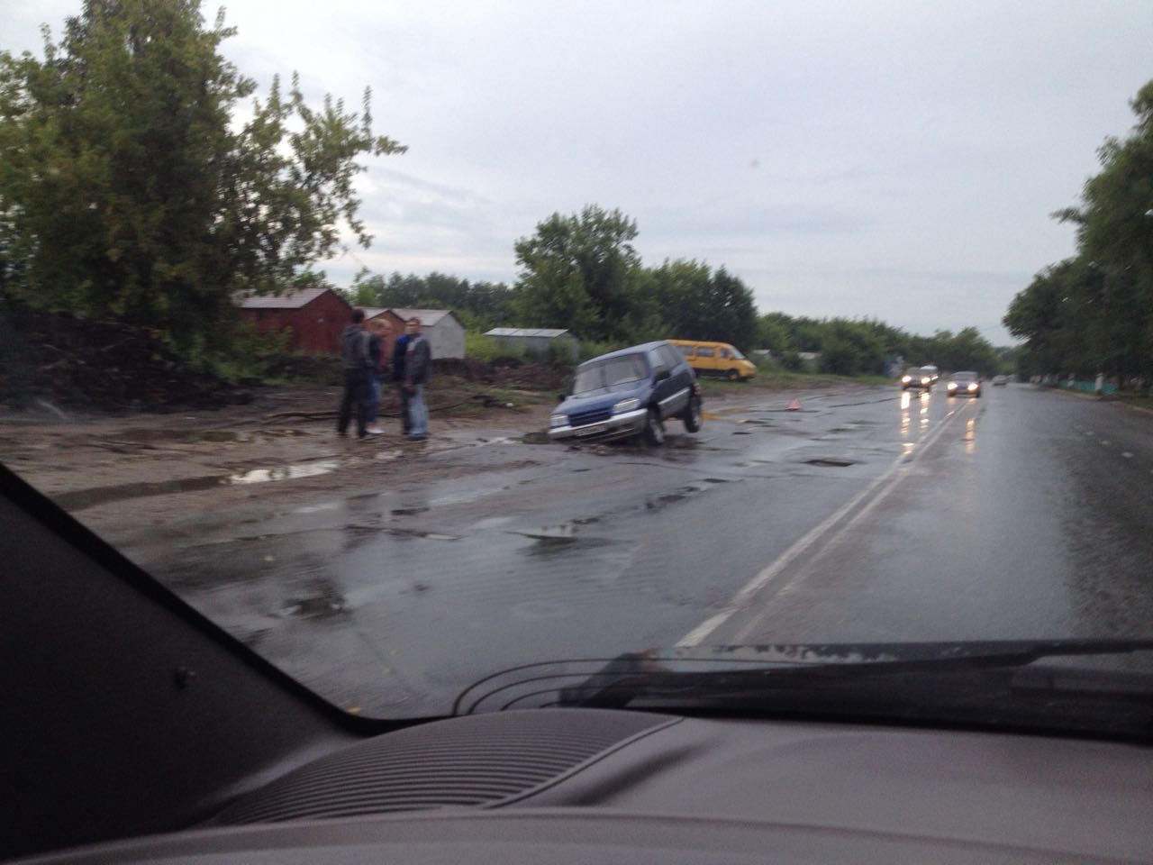 Вечером седьмого июля в Саранске очевидцы наблюдали как водитель на автомобиле «Шевроле Нива» попал в яму на дороге по улице Сущинского недалеко от небольшого торгового центра на Химмаше.