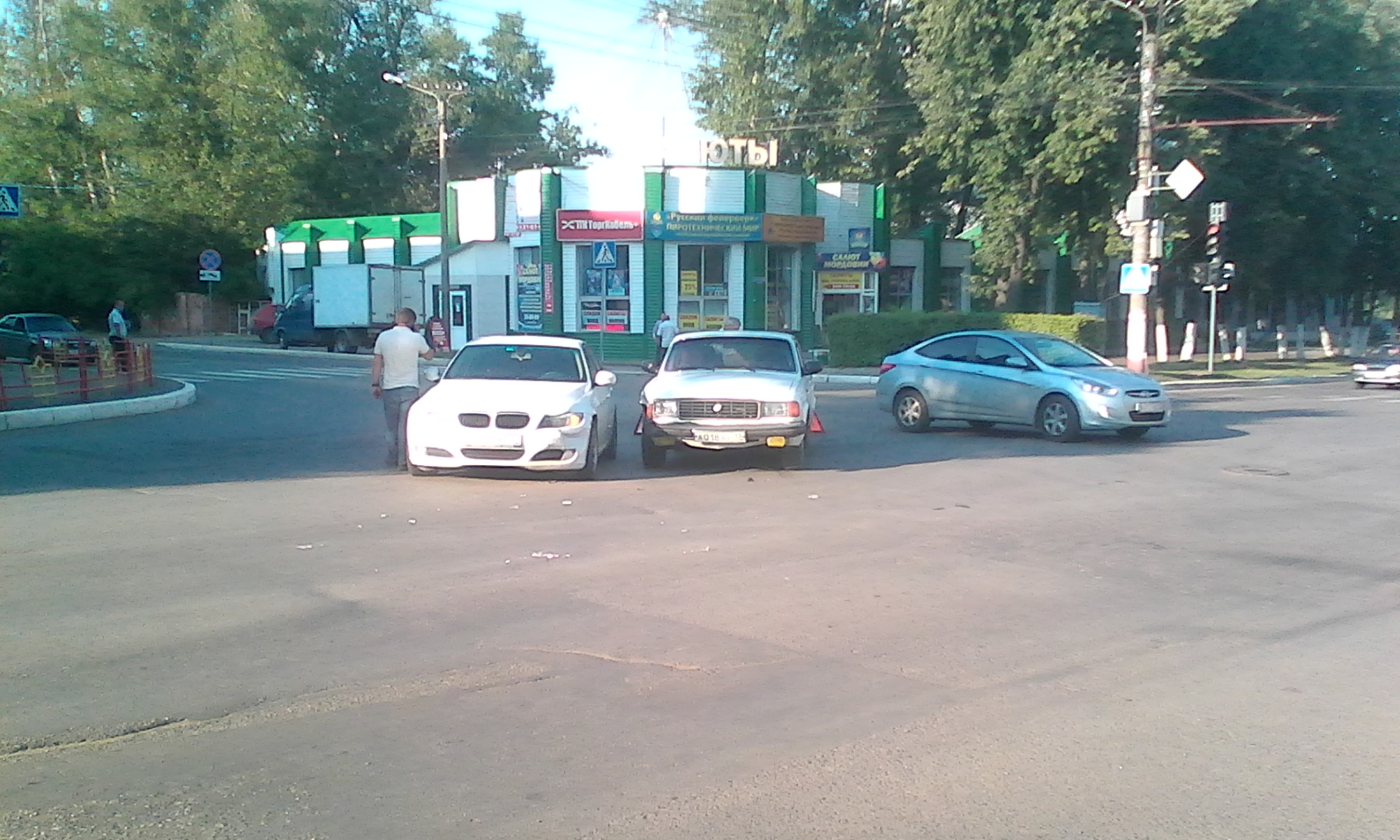 Около шести часов вечера на улице Васенко, где находится магазин «Салюты» на пешеходном переходе столкнулись иномарка "БМВ" и отечественная Волга.
