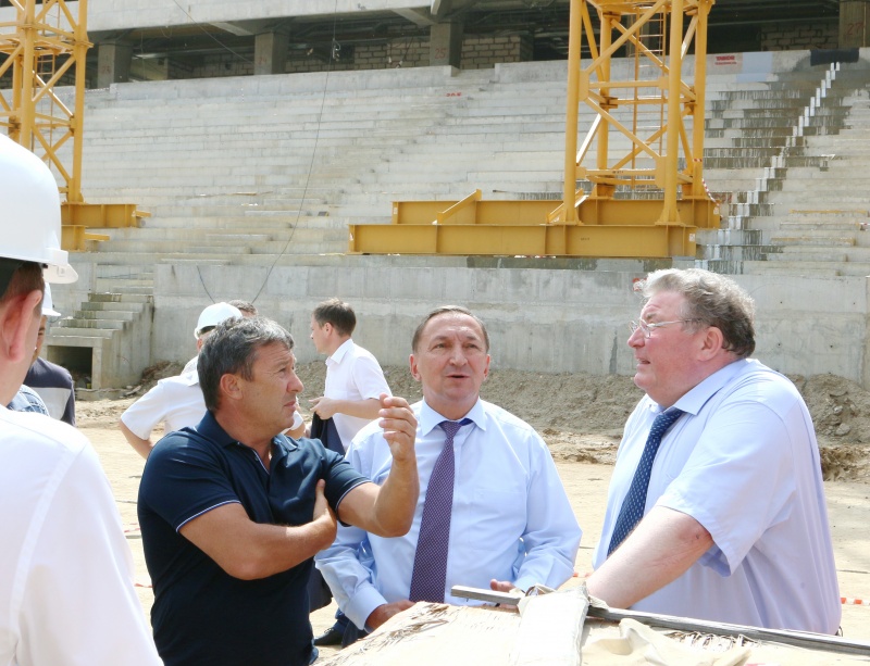 Третьего августа Владимир Волков провел выездное совещание, на стройке футбольного стадиона. В обсуждении актуальных вопросов строительства «Мордовия-Арены» приняли участие Владимир Сушков, Алексей Меркушкин и руководитель ПСО «Казань» Равиль Зиганшин..jpg)