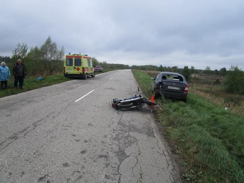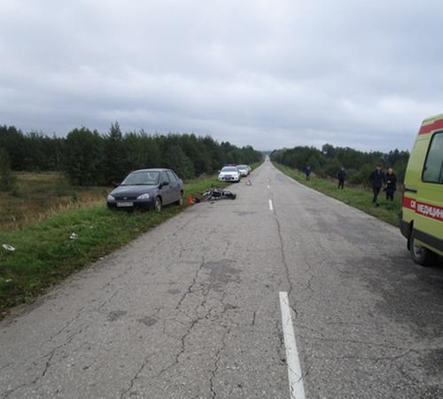 В Мордовии мотоциклист без прав наехал на припаркованную легковушку