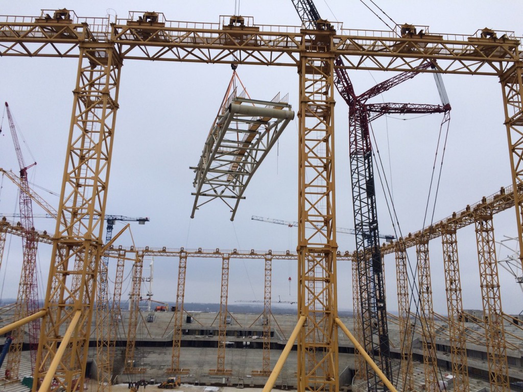 На стадионе «Мордовия Арена» завершили монтаж первого блока кровли