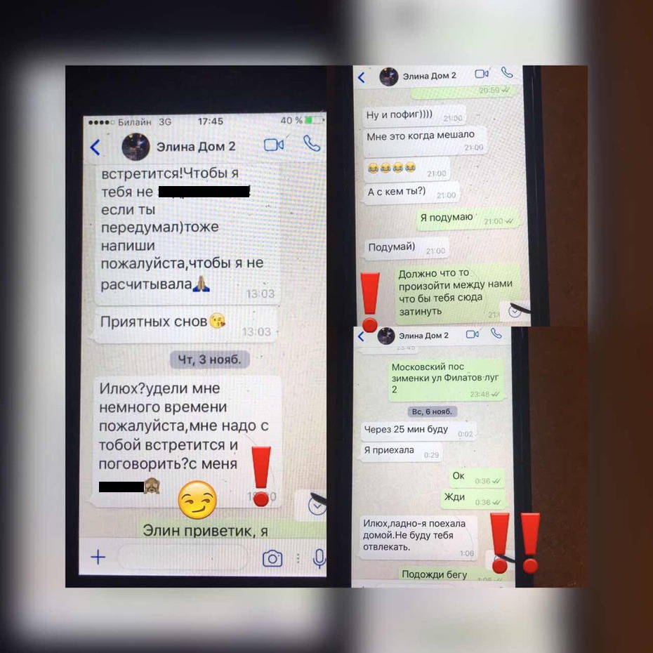 фото переписки Ильи и бывшей участницы Элины, источник: dom2.ru