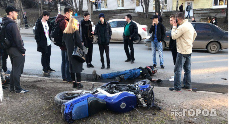 В центре Сыктывкара мотоциклист без прав сбил подростка и вылетел на асфальт (фото)