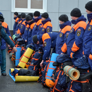 Сотрудники МЧС выстроили для осмотра плавательные средства и буксирующий их транспорт, разложили инвентарь и снаряжение.