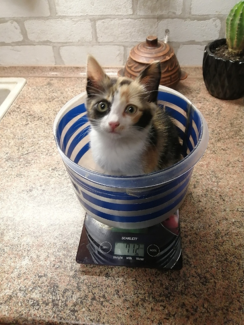 Очень общительная, неугомонная кошечка. Примерный возраст — месяца два. Абсолютно беспроблемный котенок. Ходит в лоточек. Очень социальна. Куратор: Ирина, тел.: 8 927 276 27 32.