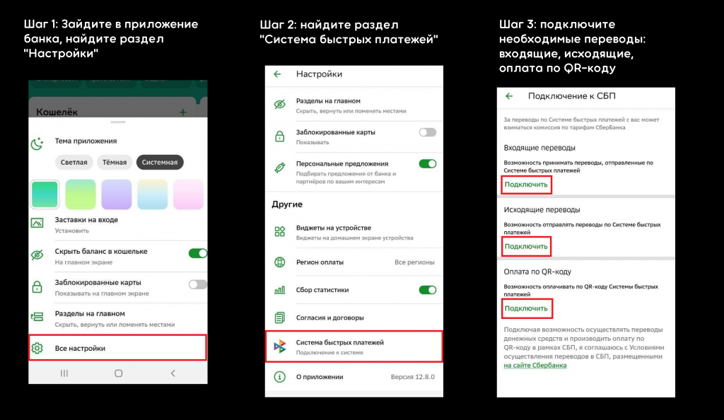 На сегодняшний день более 200 банков присоединились к Системе быстрых платежей. Как правило она уже автоматически подключена в мобильном приложении банка. Однако есть несколько банков, клиентам которых нужно подключить СБП — это Сбер и Россельхозбанк. Рассмотрим, как подключить СБП на примере Сбера.