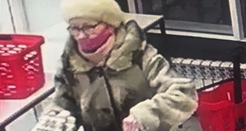 Женщина, которой на вид 50-55 лет, украла 1500 рублей с банковской карты. Она носит очки, была в серой шубе, белом берете и коричневых сапогах.