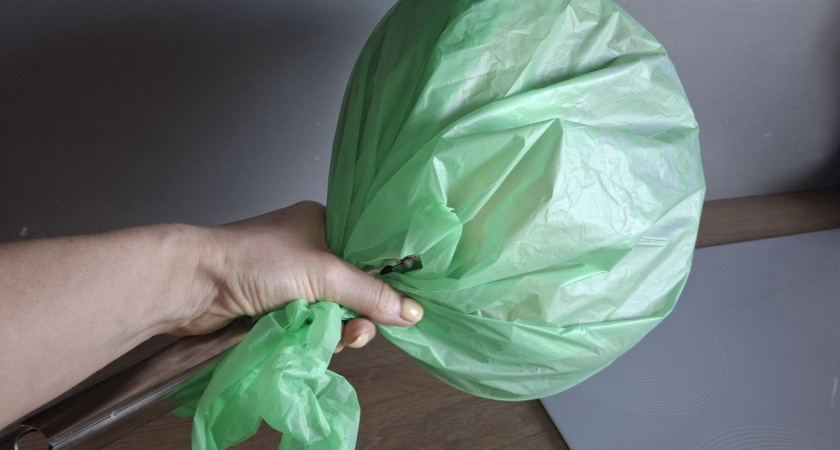Теперь поместите пригоревшую сковороду внутрь полиэтиленового пакета. Осторожно вылейте приготовленную смесь в пакет так, чтобы она полностью покрыла загрязненные участки сковороды. Плотно завяжите пакет, чтобы смесь не вытекла и не испарилась. Оставьте сковороду в таком виде примерно на час. За это время активные компоненты смеси размягчат нагар.